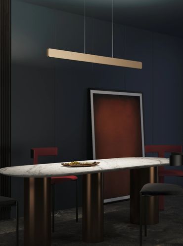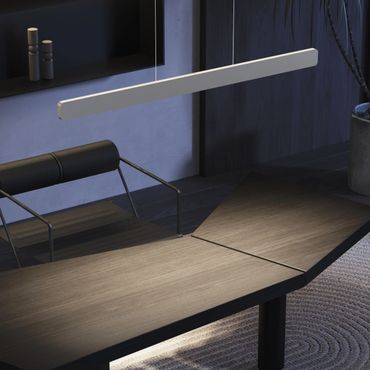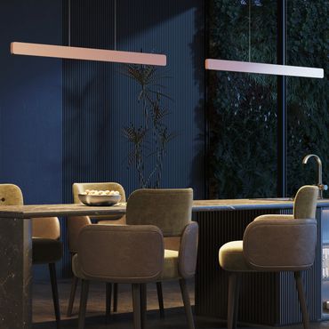 Kaia is a unique hanging luminaire that stands out for its linear appearance and careful design. You can easily adjust the height of the luminaire as needed and intuitively control the uplighting and downlighting effects with gestures or an app.Kaia provides the perfect amount of light for every situation, allowing you to fully enjoy the beauty of the moment in any environment.